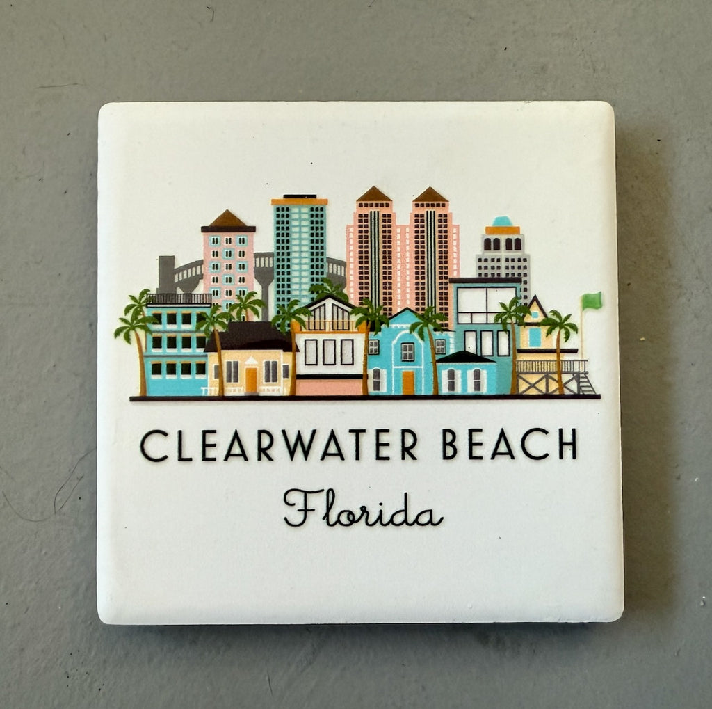Clearwater Beach Florida Illustrated Skyline Ceramic Fridge Magnet