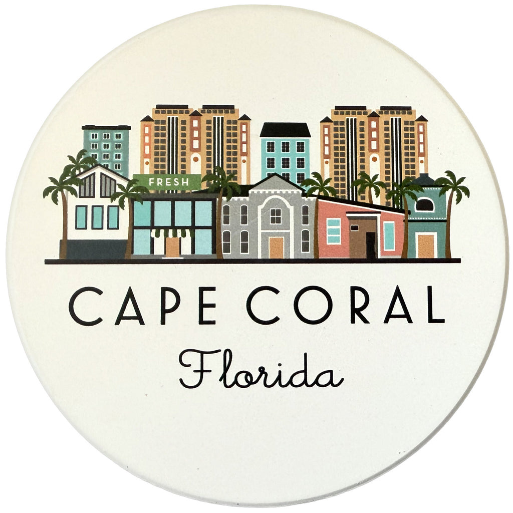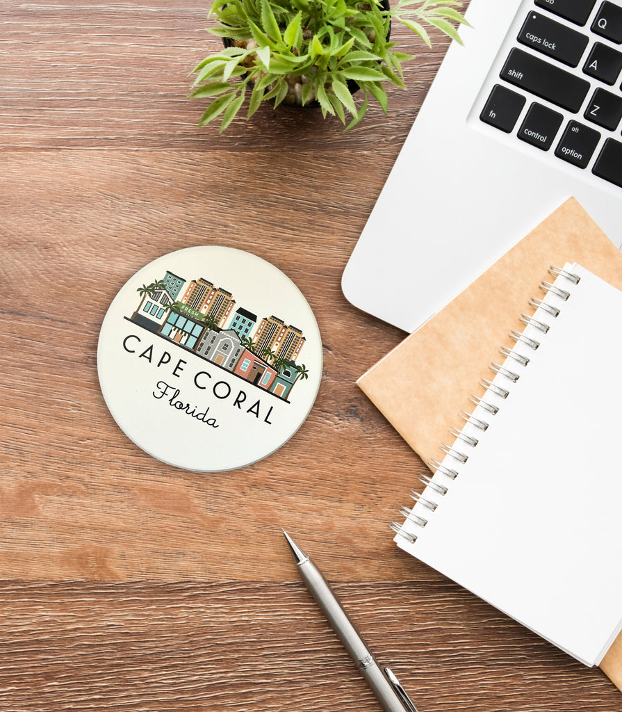 Cape Coral Florida Skyline Absorbent Stone Ceramic Coaster with Cork Backing