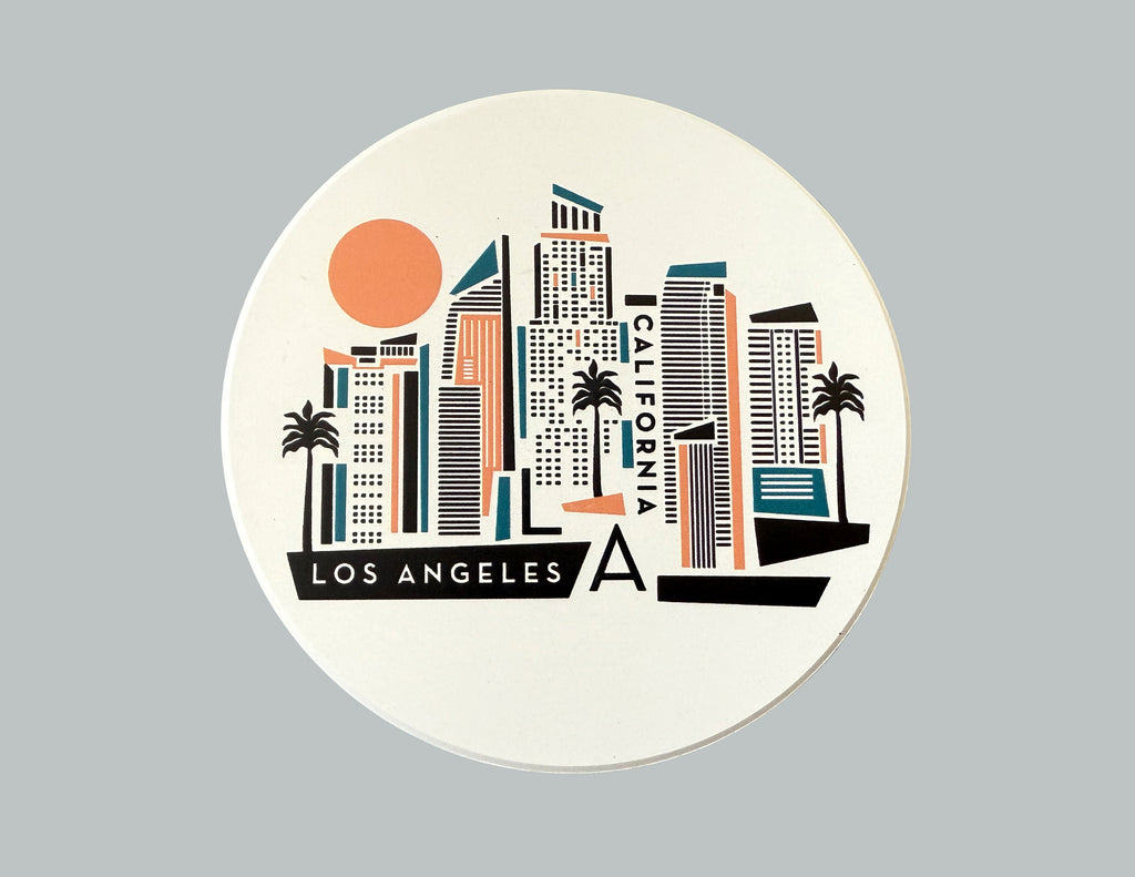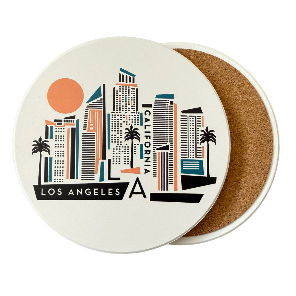 Los Angeles Geometric Skyline Absorbent Stone Ceramic Coaster with Cork Backing